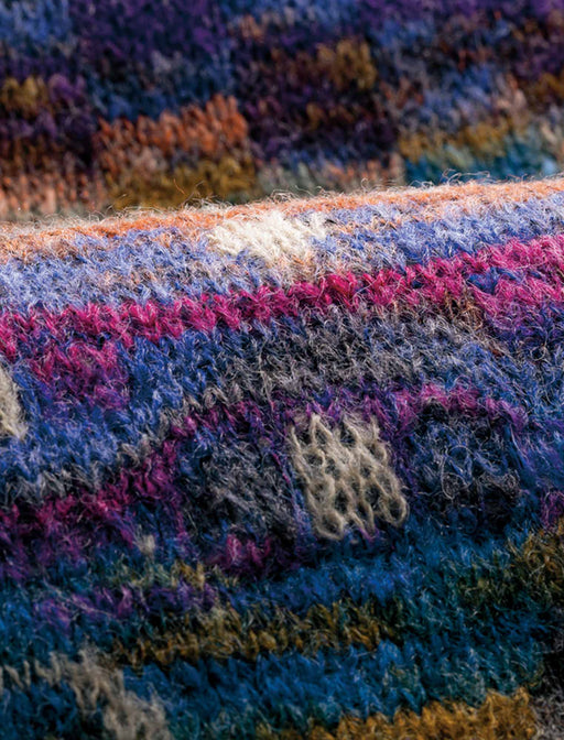 かすり糸が織りなす美しい彩りにドット柄を重ねた、趣き深いデザイン。 袖を通すたびに、どこか懐かしく、それでいて新しい。 まるでアートを身に纏うような高揚感を、ぜひあなたの冬のワードローブに。