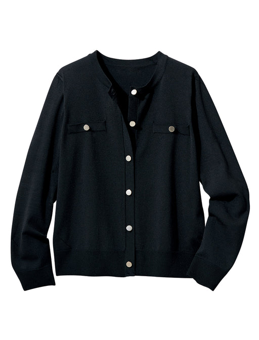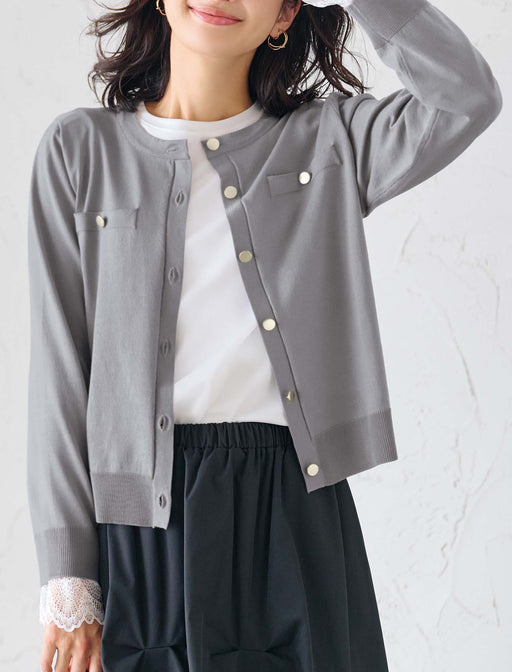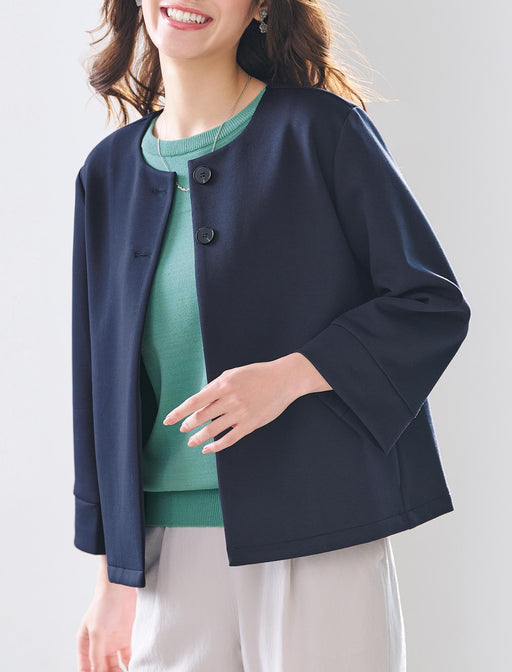 カーディガンの軽やかさと、ジャケットのきちんと感を両立した一着。 控えめな光沢のゴールドボタンが、アクセサリー要らずの華やかさを演出。 クラシックなエッセンスを加え、いつものデニムスタイルも瞬時にクラスアップさせてくれます。