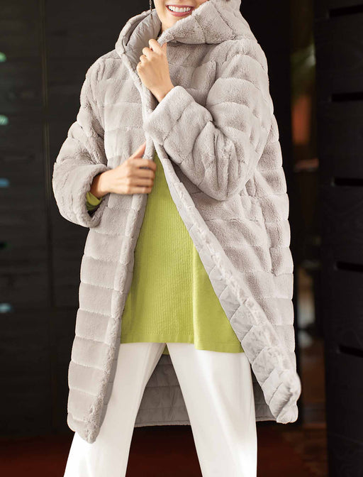 冬の空気を感じる朝、ずっと触れていたくなるような柔らかなエコファー。 リアルファーを凌ぐほどの繊細な毛並みが、お顔周りを華やかに、そして優しく彩ります。 デイリーな装いには、裏面のマットな質感(※スエード調/キルティングなど)を表にして、大人の抜け感を。 華やかなシーンには、艶やかなファーを表...