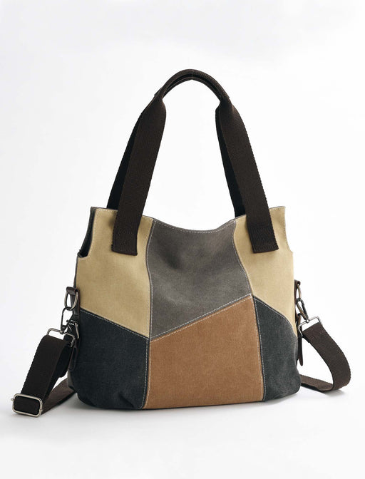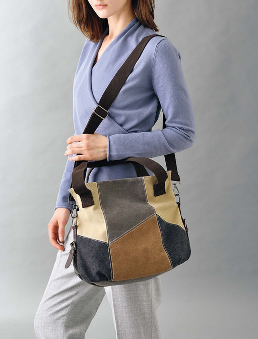 しっかりとした綿のキャンバス地をマルチカラーのパネル切替えで仕上げた2wayバッグ。<br>容量も十分で取り外せるショルダー紐付きで便利◎<br>「機能的だけど、無難じゃない」大人のための実力派バッグです。