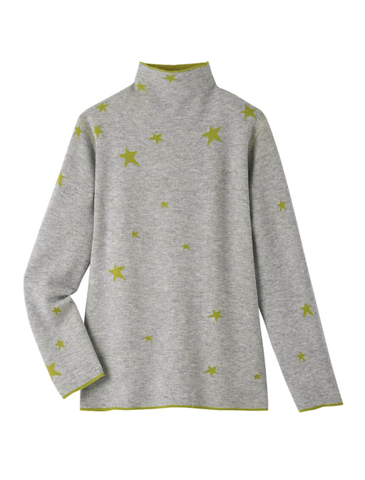 「前後&表裏」4通りの星柄ニット。 表裏で配色が反転するリバーシブル仕様に、前後でもニュアンスの異なる柄で着用できる4wayデザイン。 なめらかな編み立てが心地よいプルオーバーです。