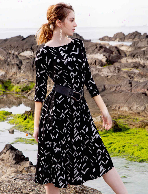 大人の遊び心をくすぐる、スカーフを纏ったようなモダンなデザイン。 配色切替が縦ラインを強調し、着痩せ効果も抜群です。 一枚でコーディネートが完成し、パーティからデイリーまで品よく華やぐ主役級アイテムです。