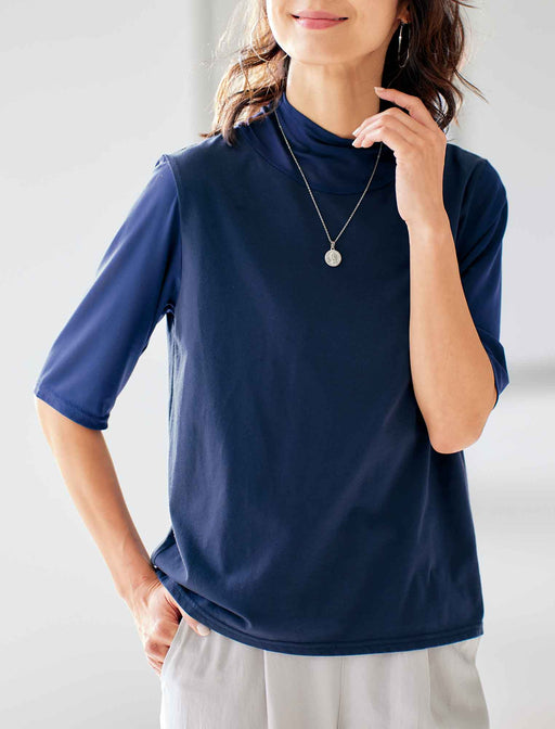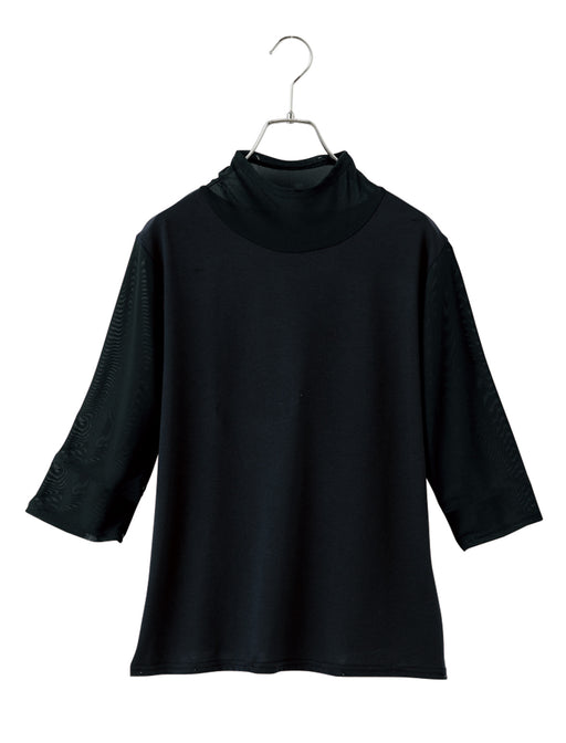 プルオーバーを涼しく上品に。 身頃は動きやすいカットソーで、首元と袖部分は同系色の風を通すメッシュ素材に切替えたデザインです。 顔周りと腕に抜け感を作ることで、重たくなりがちなプルオーバーを軽やかに。