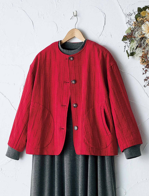 羽織ってもボタンを留めても、品よく決まる洗練ジャケット。 パンツやスカート、ワンピースにも相性のよいジャケットは、ほのかに浮き立つジャカードの生地感がとてもきれい。 シンプルに着るだけで、品よくリッチなムードに決まります。
