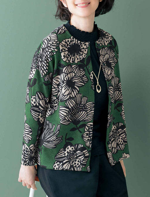 袖を通した瞬間、パッと視界が開けるようなドラマチックな大花プリント。 繊細なタッチで描かれた大胆なボタニカル柄は、甘くなりすぎず、大人の女性にふさわしい品格を漂わせます。 シンプルなTシャツやデニムにさらりと羽織るだけで、まるで計算し尽くされたような洗練されたスタイルが完成します。