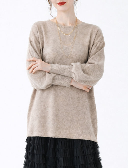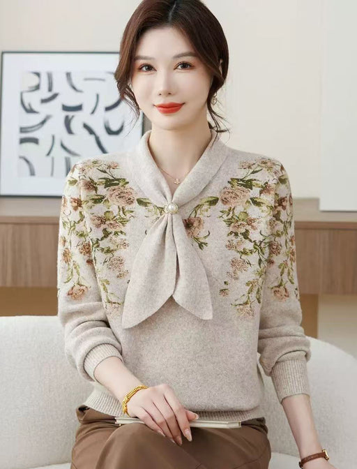 胸元から袖にかけて広がる繊細な花柄が、冬の装いを華やかにクラスアップ。 ゆったりしたドルマン袖と長めのリブが、上品でメリハリのあるシルエットを演出します。 1枚で絵になる、大人の気品漂う主役級ニットです。