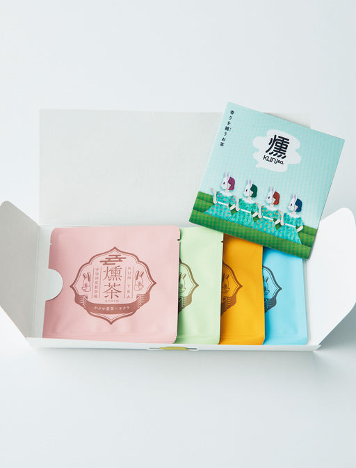 これまでのお茶では馴染まなかったシーンや食事とも愉しめる、飲みごたえのあるクラフトティーです。 個包装の燻茶4種類を専用パッケージに詰め合せました。 まずは試してみたいという方にも、さらっと渡せるプチギフトとしてもオススメです。