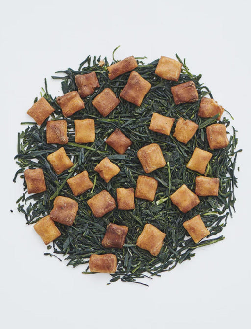 昭和初期、京都のある茶商が鏡開きで鏡餅を砕いた破片を炙ってお茶に混ぜたことが、今の玄米茶のルーツと伝えられている。 原点回帰の玄米茶を体験してもらうために、特別に炭火炒り餅を作り、茎焙じ茶にブレンド。 上品な入炒り餅の香ばしさをいかすために、抹茶原料のてん棒を焙煎した茎焙じ茶を使用。 突き抜け...