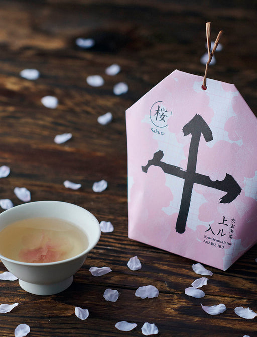 桜の季節に合わせて販売する、上ル入ルの春限定商品です。 さくら茶とは、塩漬けの桜花にお湯やお茶を注いだ飲み物のこと。 桜は「生命力」や「未来」、「繁栄」や「発展」を象徴する縁起物です。 桜をまるごと身体に取り入れて、花咲き誇る未来を願う特別な一杯です。