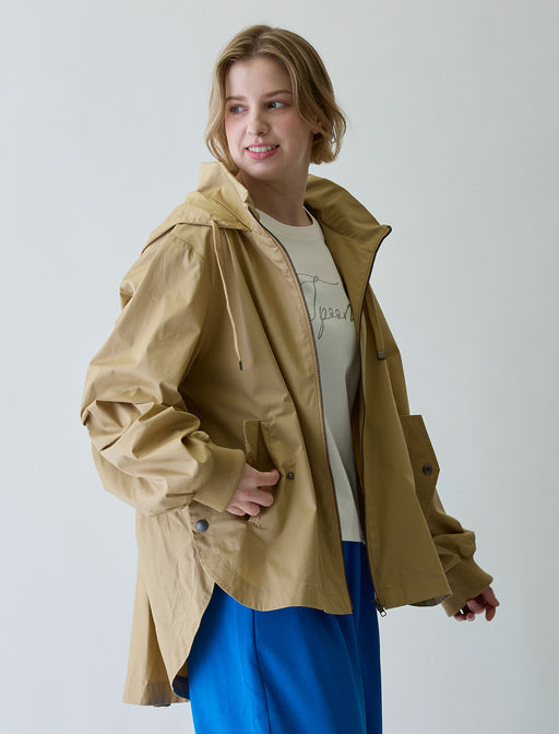 軽やかな着心地と美しい動きが魅力の、フード収納型アウターコート。 さらっと羽織れる軽量素材を使用し、重さを感じさせない仕上がりで、季節の変わり目に活躍する一枚です。 歩くたびに自然な揺れが生まれ、シンプルながらも存在感のあるシルエットが、大人のスタイリングに洗練された印象を添えます。