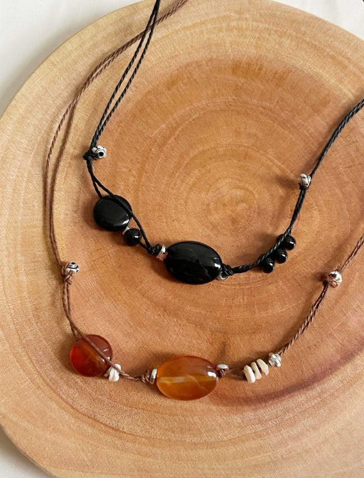 深みのある艶やかなオニックスをあしらったストーンネックレス。 シンプルでモダンなデザインながら、存在感を放つアクセサリーです。 白シャツにさらっと合わせるだけで、シャープさと大人の落ち着きが際立ちます。