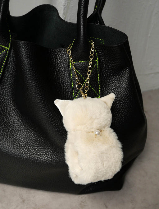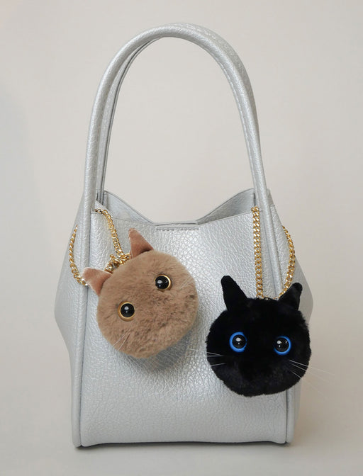 ふわふわの触り心地のネコフェイスバッグチャーム。 柔らかいフェイクファーとキョロっとした目が可愛らしいデザインです。 チェーンで留めるタイプなので、バッグのハンドルの形状を選ばずつけていただけます。