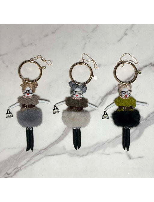 ふわもこの愛らしさが詰まった、ファッションドールチャーム。 キュートなメガネをかけたミニドールが、ふんわりポンポンスカートでおしゃれにドレスアップ。 バッグや鍵にちょこんと揺れるだけで、気分も見た目も一気に華やかにしてくれるアクセントです。