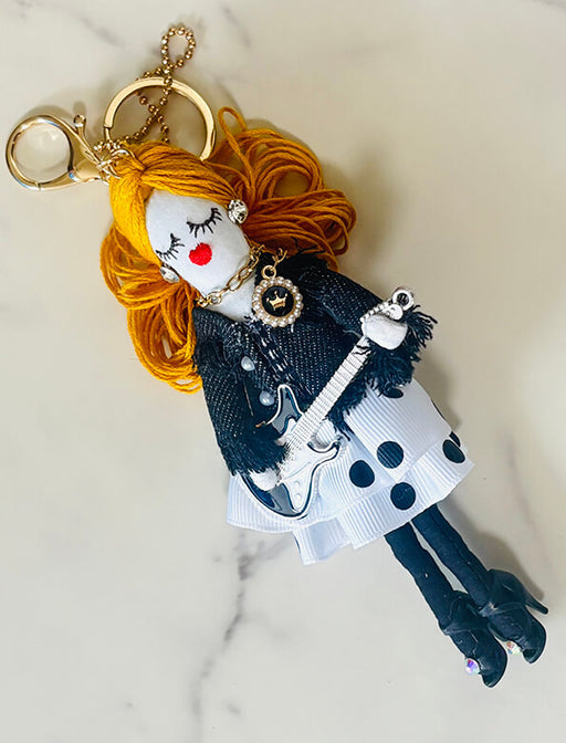ギターを抱えたポップな姿が魅力のロックスターちゃんチャーム。<br>バッグやポーチに付ければ、遊び心のあるアクセントに。<br>個性的なデザインで、持ち物に楽しいリズムを添えてくれます。