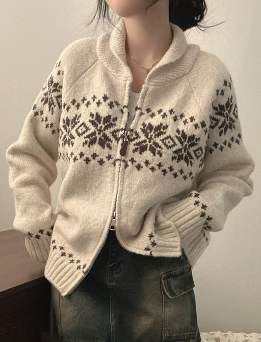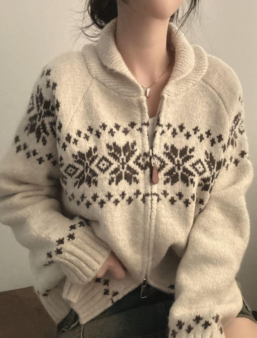 冬のムードを高めるノルディック柄のジップアップカーディガン。 ゆったりとしたオーバーサイズで暖かく、着るだけで可愛らしい雰囲気に。 首元まで閉まるデザインで防寒性も抜群。レトロでほっこりするウィンタースタイルに。