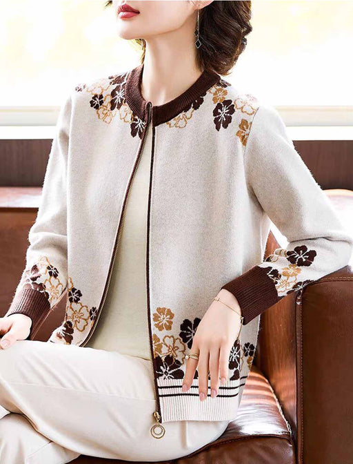 首元と袖口に施した配色リブがアクセント。 柔らかなジャカード花柄が上品に映える、大人フェミニンなニットブルゾン。 軽い着心地でデイリーにもお出かけにも活躍します。