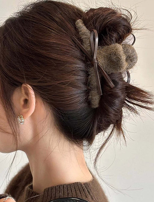 起毛感のある質感が上品な印象を与えるヘアクリップ。大きめのクリップで存在感がありながらも、落ち着いたカラーリングと素材で、大人可愛い雰囲気を演出。まとめ髪にさっと付けるだけで、一気に華やかな印象に。