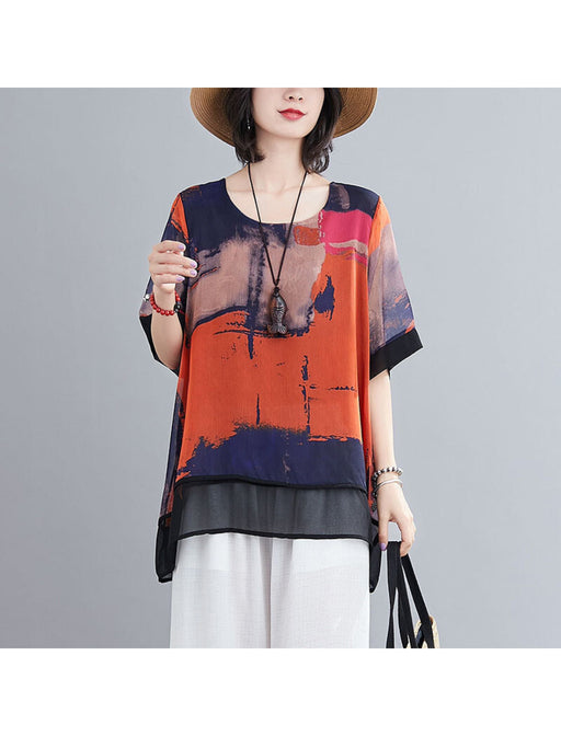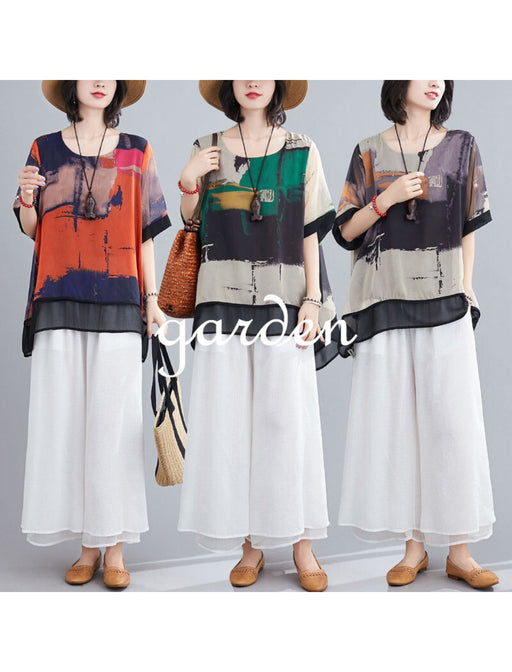ランダムなペイントスプラッシュ模様をプリントした個性派トップス。 リボンの結び方によって表情が変わり、スタイリング自由度が高いデザインです。 夏にぴったりのホワイトパンツを合わせて、アートカジュアルスタイルの完成。