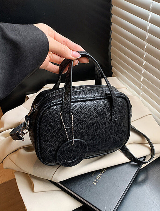 コンパクトなサイズ感が魅力のミニボストンバッグ。<br>手持ちでもショルダーでも使える2WAY仕様で、幅広いシーンに対応。<br>ころんとしたフォルムが、コーディネートにさりげない可愛さを添えます。