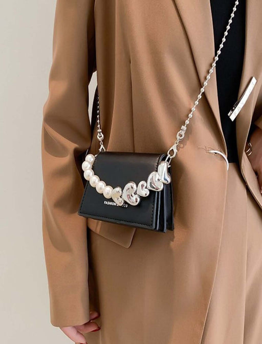 アクセ感覚で華やかさをプラスできるミニミニバッグ。 取り外し可能なショルダーストラップ付きで、ハンドバッグにもショルダーバッグにも気分に応じて使い分けできます。 結婚式やパーティーなど、パールの上品な輝きがドレス映えを後押しします。