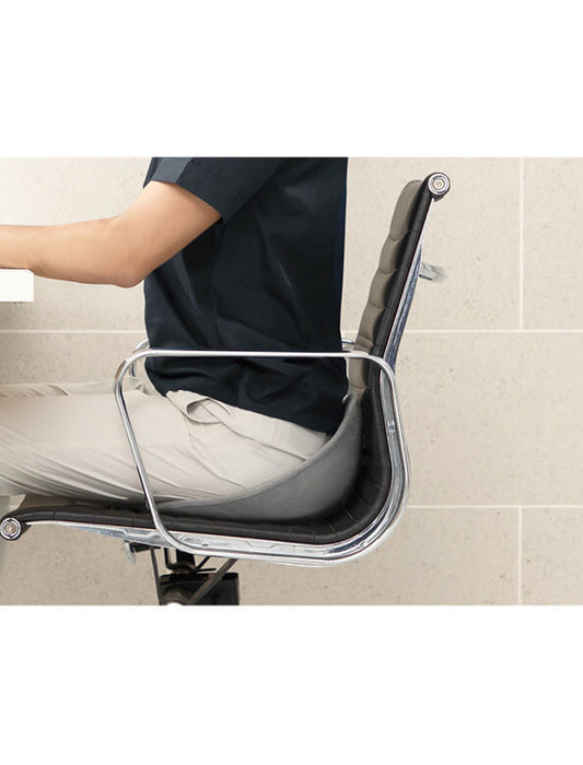 ★着目したのは騎手の姿勢★ 椅子の平坦な座面は、お尻が前滑りしてきて姿勢が崩れがちです。骨盤が後ろに倒れた姿勢は、腰に大きな負担をかける要因にもなります。 鞍のようにお尻を前後からすっぽりと包み込んで骨盤を立たせると、腰への負担が軽くなり、美しい姿勢をラクに保つことができます。 美しい座り姿勢をサポートする「鞍」から発想したKURA SEATは、お尻の丸みにあわせた滑らかな曲線座面により、長時間座ってい てもお尻が疲れにくく、快適な座り心地をサポートします。 ★鞍から発想した立体座面★
