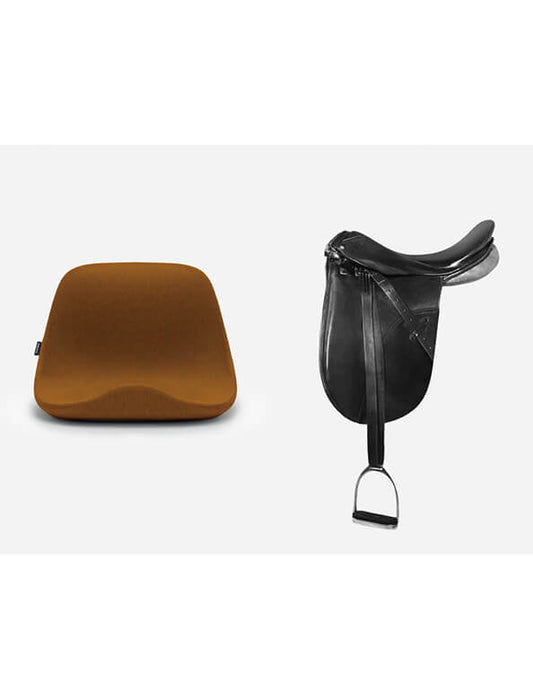 馬の鞍の構造のようにお尻を前後から包み込み、骨盤を正しく支えて姿勢崩れを防ぐため、いつまでも美しくラクな姿勢が続きます。ワークチェアやダイニングチェア、ベンチシートの上に置いたり、床に置いて座ったりと幅広く使用でき、テレワークや食事、リラックスタイムなど、シーンにあわせてどこでも心地よい座りが実現します。
