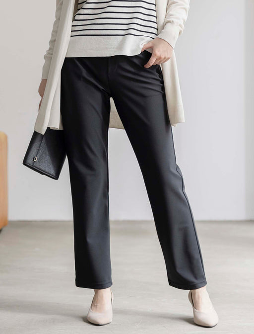素材のキレイさと落ち感を活かした、膝裾ゆったりの「今っぽストレート」 驚くほど快適な履き心地とベーシックなデザインが、さまざまなシーンで活躍する一着。 ニットやカーディガンと合わせてカジュアルスタイルに、ジャケットを合わせてオフィススタイルに◎