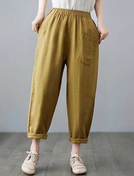 ナチュラルな風合いが魅力のリネン混パンツ。<br>ゆったりとしたシルエットに、斜めポケットが程よい抜け感をプラス。<br>通気性が良く、季節を問わずリラックスして穿ける1本です。