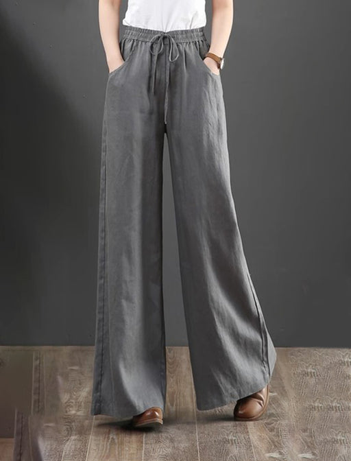 ナチュラルな風合いが魅力のリネンライクイージーワイドパンツ。<br>しっかりとボリュームのあるワイドシルエットが特徴で、リラックス感のある大人のスタイルを演出します。<br>カジュアルからきれいめまで幅広いコーディネートに対応できる万能アイテムです。