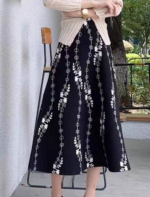華やかな総柄が目を引くフレアニットスカート。 歩くたびにふんわり揺れるシルエットが女性らしさを引き立てます。 ニット素材ならではの伸びやかさとやさしい着心地で、長時間のお出かけも快適。 今年らしい存在感を添えてくれる一枚です。