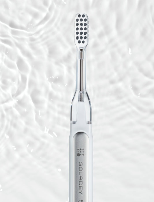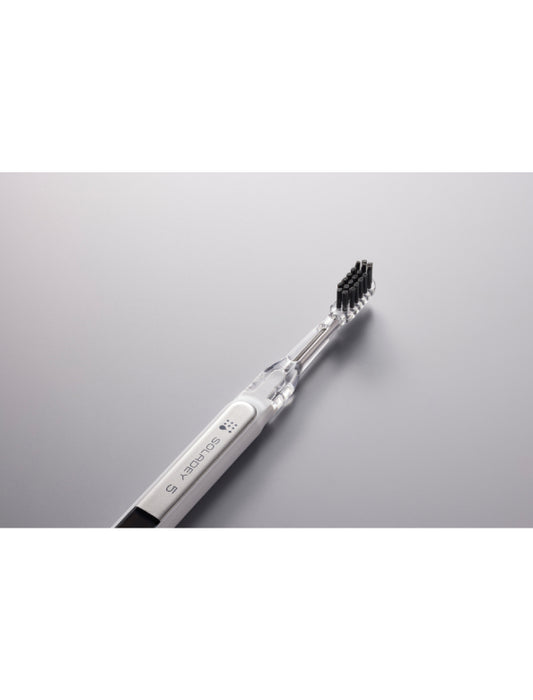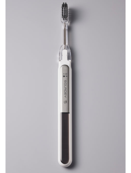 電子でまもる、ミライ歯ブラシ「SOLADEY(ソラデー)」は、歯の表面にこびりついた歯垢を除去し、一晩中、虫歯菌を寄せ付けない、全く新しい歯ブラシシリーズ。光触媒作用(酸化チタン)+ソーラーパネルから発生する電子を利用した化学作用で歯垢を分解して落とし易くする歯ブラシ。同じようにブラッシングしても効率よくブラッシング出来るので、驚く程のつるつる感をご体感頂けます。ブラシ交換式なので本体は長期間使用可能。ランニングコストも普通の歯ブラシとほぼ変わりません。その他にも虫歯菌の除菌や歯周病菌の除菌などが基礎実験にて確認されている高機能歯ブラシです。