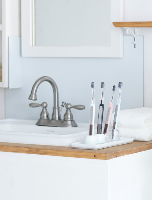 口内は、歯を良く磨く方でも3,000億個の菌が住み着いています。当然ブラッシングをする事で、歯ブラシにも菌が移り繁殖します。そんなブラシを清潔に守る為に抗菌可能を施しました。