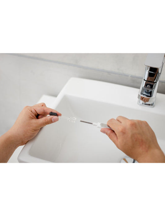 ブラッシングは毛先で磨く事で歯垢を落とす事が出来ますが、強いブラッシング圧で磨くと毛がたわんでしまい、上手く毛先で磨く事が出来ません。そこで1本1本を六角形にした特殊フィラメントを採用しました。毛に角がある事と、隙間なく密に植毛する事で毛倒れし難く効果的な毛先でのブラッシングが可能になります。