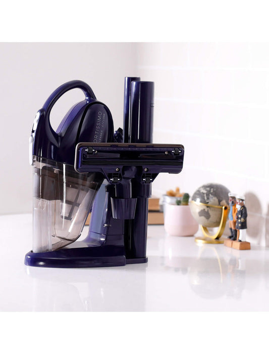 クラフトマンシップ息づく新潟燕三条を拠点に、多様化するライフスタイルに寄り添うプロダクトを提案し続けているのが、家電メーカー「ツインバード」。企画、開発、工場ライン、営業からコールセンターまでを自社で担うからこそ叶うスピード感と丁寧さを込めたものづくりに、国内外から注目が集まっています。そんな同社の「コードレスハンディークリーナーサットリーナサイクロン」は、アタッチメントも多彩なパワフルコードレスクリーナー。布団や窓サッシの掃除に便利な布団ノズル、すき間ノズル他、すべてのアタッチメントと本体は、B5サイズの充電台にスッキリコンパクトに収納可能。本体重量は約1kgと軽く、コードレスなので、汚れが気になったときにサッと取り出して使えます。取り回しがしやすくワイドなヘッドの床用吸込口を使えば、広い床のお掃除もラクラク。パイプに伸縮性のあるホースを内蔵した新開発の「マジックパイプ」で、アタッチメント取付の手間も軽減。吸込口を自在に動かせるので、狭い階段や高い位置にあるエアコンの掃除も手軽です。アタッチメントを組み合せれば、ソファや車のシートの清掃にも便利。クールなプルシャンブルーです。