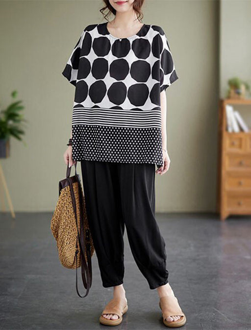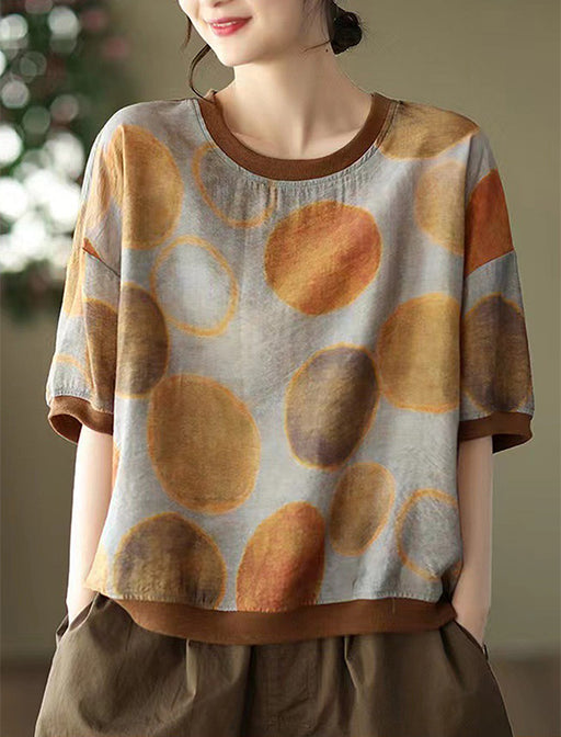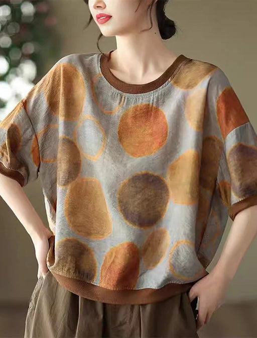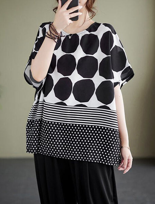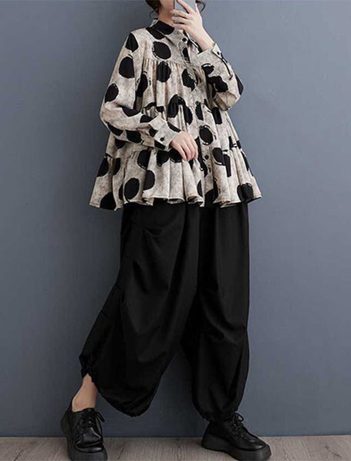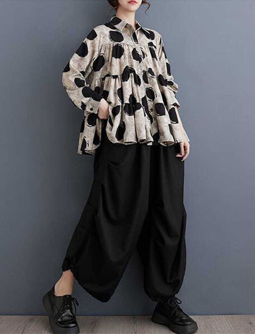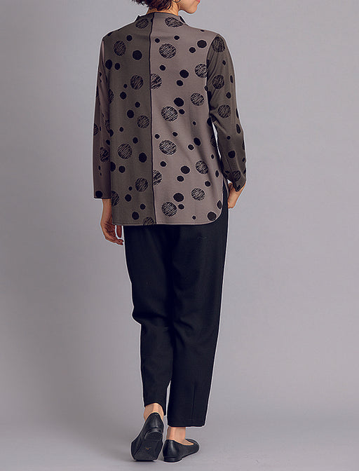 リズミカルな変形ドットプリントが目を引く、ゆったりシルエットのブラウス。<br>軽やかな素材感で着心地も快適。<br>気になる体のラインをさりげなくカバーしながら、程よい華やかさを演出します。
