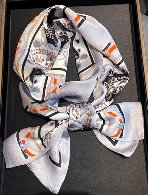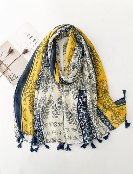 メッシュ素材とプリントデザインを組み合わせたストール。<br>無地部分とプリント部分のコントラストが魅力的で、シンプルながらもおしゃれな印象を与えます。<br>軽やかな素材感で、季節の変わり目にぴったりなアイテムです。