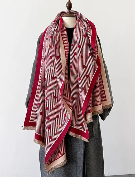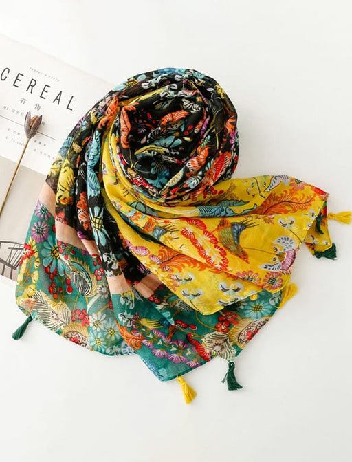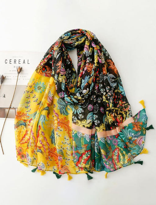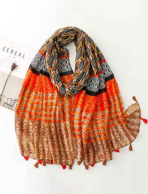 マルチカラーの大判ストール。鮮やかな色合いが特徴的で、コーディネートに華やかさをプラスします。フリンジがアクセントとなり、シンプルなスタイルにも個性を引き立てるアイテムです。大判サイズで、巻き方次第でさまざまなアレンジが楽しめます。