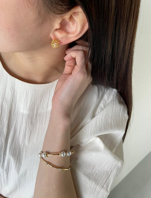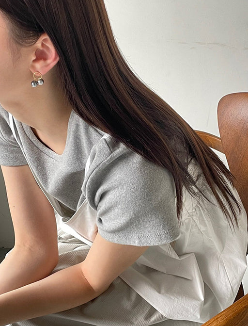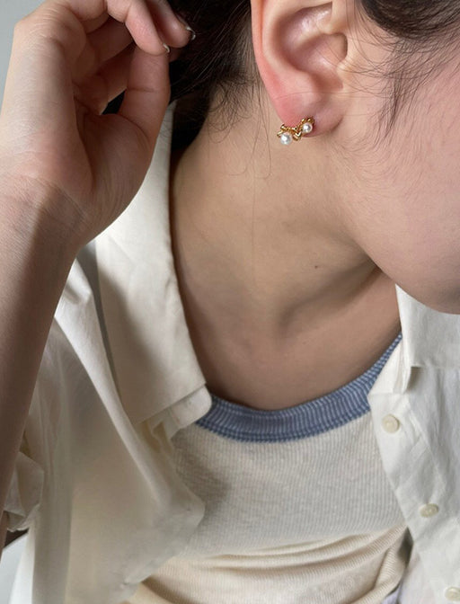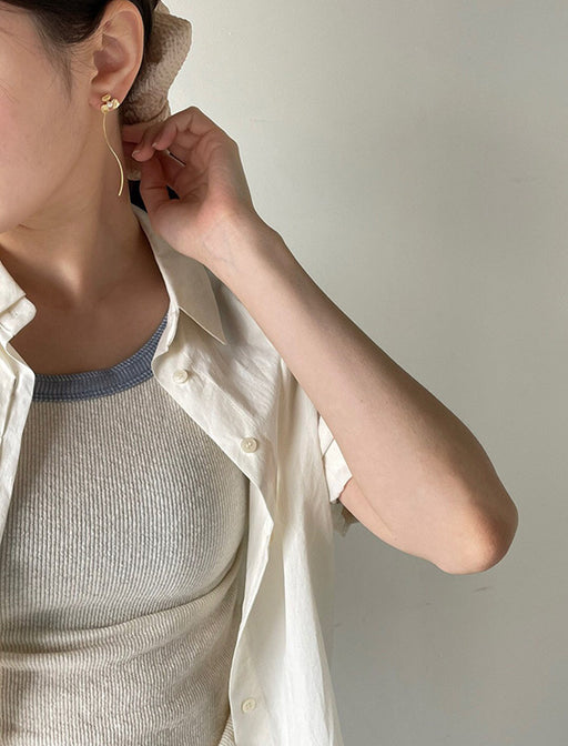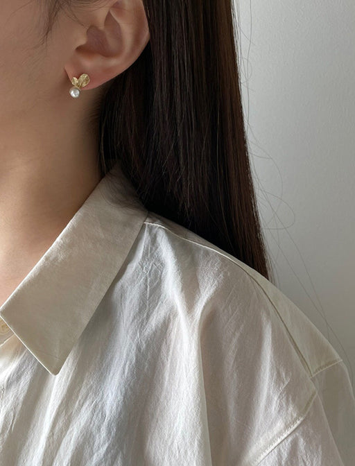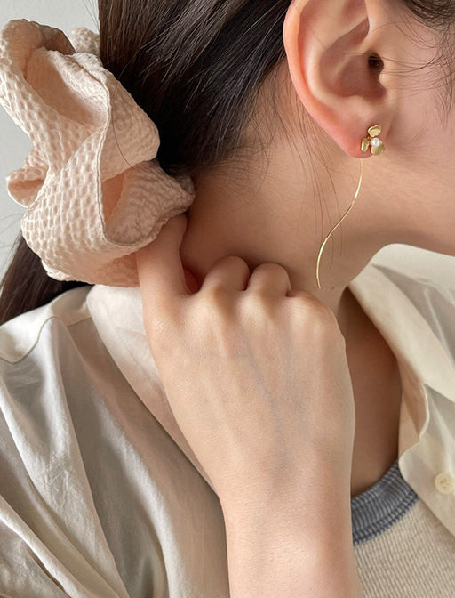 上品な光沢とエレガントなデザインが魅力のドロップパールピアス。<br>ニ連の美しいパールが揺れることで耳元に華やかな輝きを添え、ゴールドが大人な印象です。<br>日常使いから特別な場面まで幅広く活躍し、あらゆるスタイルに調和します。
