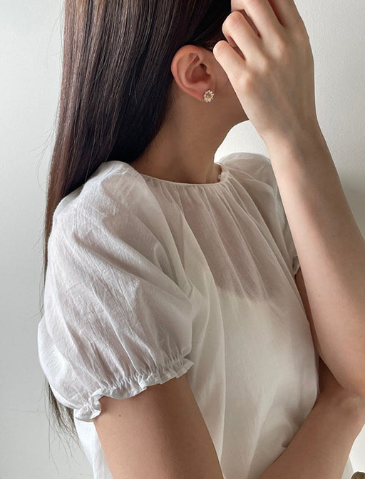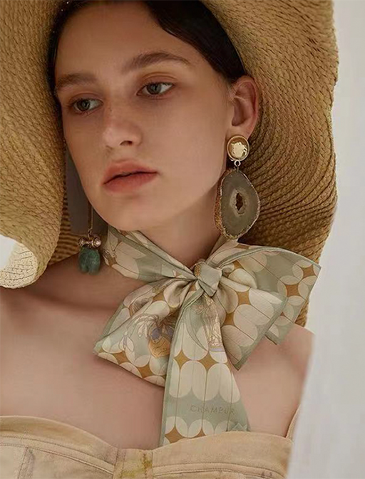 ふわりと纏う、パールが咲くオーガンジーストール。 軽やかな透け感が美しいオーガンジーに、パール使いの花モチーフをあしらった華やかな一枚。 ふんわりとした素材感が顔まわりを優しく包み、上品でフェミニンな印象をプラスします。
