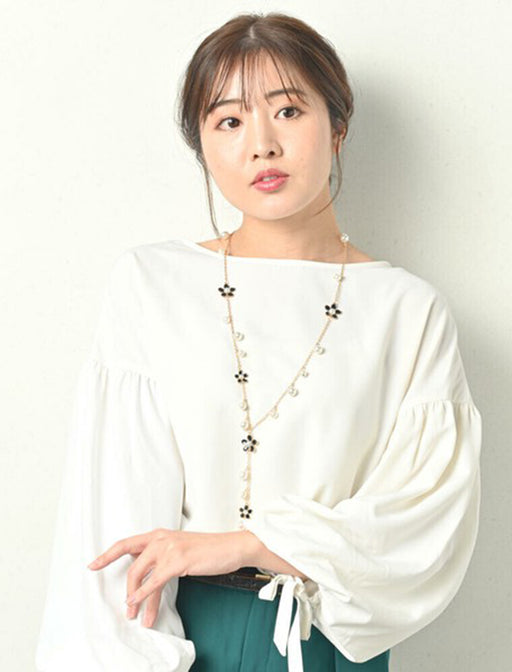 チョーカー風からロングスタイルまで自由に調整できるイミテーションパールネックレス。大きめの一粒イミテーションパールが華やかで、フォーマルシーンもカジュアルシーンもどちらもお使いいただけます。ハイネックやブラウスの上に合わせてコーデのポイントにしても◎。