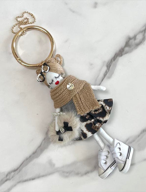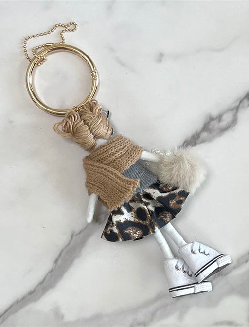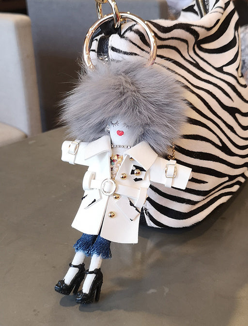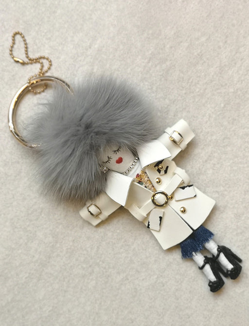 ファーとレザーを組み合わせた、かわいらしいトレンチちゃんチャーム。<br>トレンチコートを身にまとった愛らしいキャラクターが、バッグやポーチをおしゃれに彩ります。<br>ファー素材はふんわりとした質感を、レザーのディテールは高級感をプラスし、ちょっとしたアクセントにぴったり。