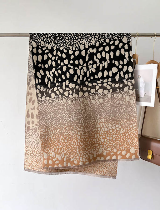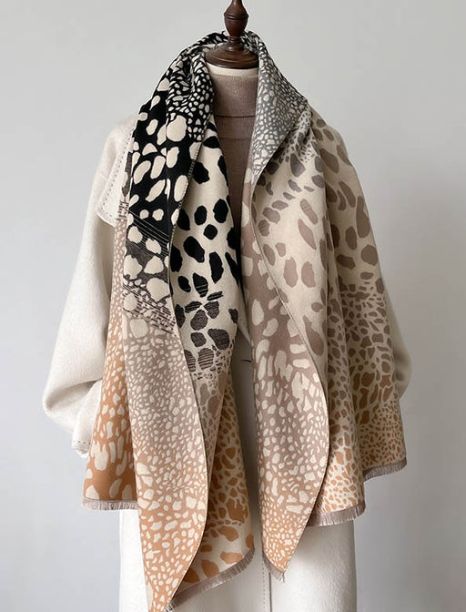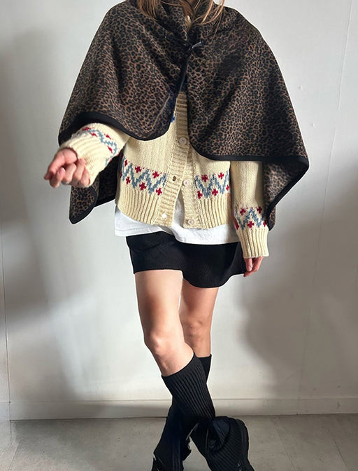 大胆なレオパード柄が目を引くエレガントなショール。<br>シンプルなコーディネートにもアクセントを加え、一気に華やかな印象に。<br>肌触りの良い柔らかな素材で、秋冬のコーディネートに温かみをプラスします。