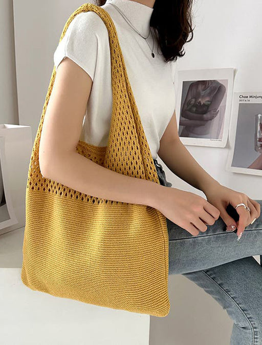 ナチュラルな風合いが魅力のワンショルダー編みバッグ。<br>軽やかな素材感で春夏のスタイリングにぴったり。<br>肩掛けしやすいデザインで、デイリー使いにもおすすめです。