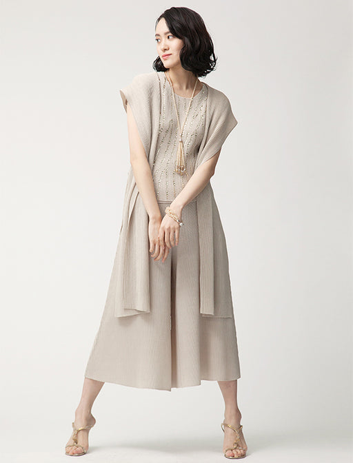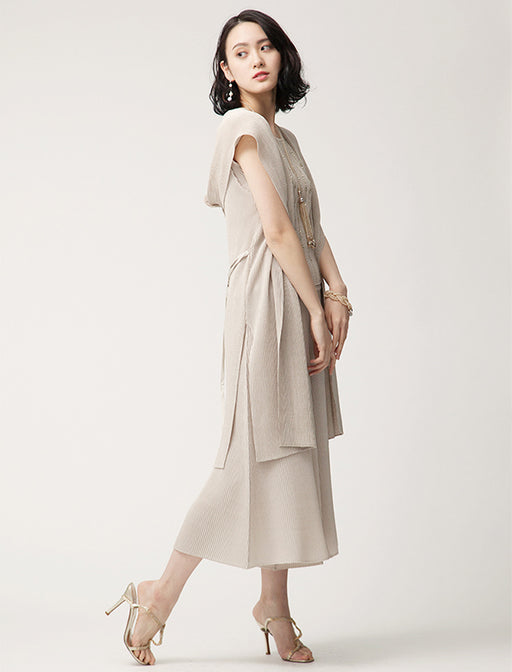 レイヤードの必需品とも言える、軽やかなロング丈ベスト。 ウエスト部分のドローストリングでシルエットの調整が可能、スタイルアップにも期待できます。 大人のカジュアルスタイルに、ひとつプラスするだけで洗練された印象に。