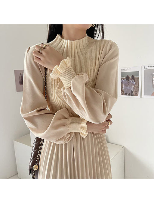 ミックス素材のこなれ感をまとう、万能ワンピース。 胸元の切り替えディテールとコクーンシルエットで、スタイリッシュなコーデが瞬時に完成◎ アクセサリーやブーツを合わせれば、お出かけや旅行にもピッタリの優秀アイテム。
