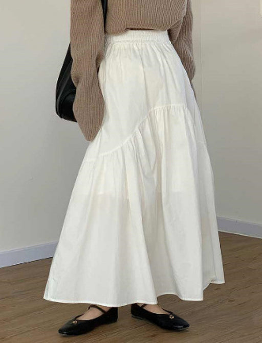 歩くたびに揺れるシルエットが女性らしい印象を与えるマキシ丈スカート。 ウエストはゴム仕様で、ラクな穿き心地とすっきり見えを両立。 シンプルなデザインで、カジュアルにもきれいめにも合わせやすく、季節を問わず活躍します。