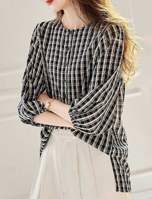 3色の糸が織りなす、ジャンパースカートの品格。 ブラック・グレー・オフホワイトの先染め糸で織り上げたグレンチェック柄は、奥行きのある表情。 すらっと広がるシルエットに素材感が映え、背中が空いた後ろ姿もすっきりスマートな印象。