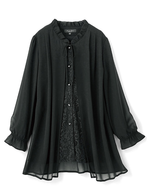優雅で温かみのあるお出かけスタイル。 レーシーな表情を編み地で仕上げたレイヤードニット。 ブラウスやプルオーバーにも相性◎