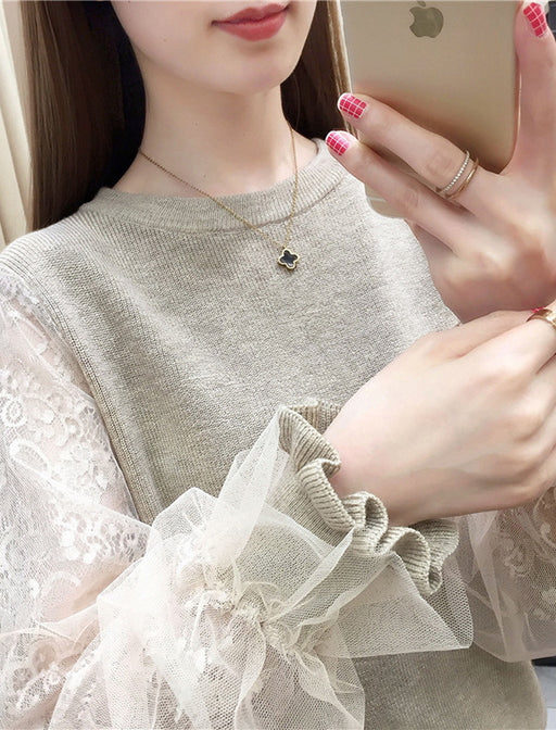 袖レースで差をつける、潤いシアバター加工の美人見えニット。 ベーシックなデザインながら、トレンド感と高機能を兼ね備えた、主役級のニットが登場。 身頃は着回し力抜群のシンプルなニット素材ですが、袖口にはエレガントなレースを贅沢に使用。 ジャケットやカーディガンの袖口からレースを覗かせれば、一気に...