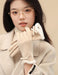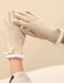 手首のふわふわ裏ファーと小さなリボンが愛らしい手袋。